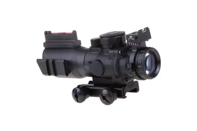 Theta Optics equipment is a quarantee of high quality for a reasonable price. Closed in a durable metal housing, transparent optics with a cross sight of mid-dot type and 4X magnification. Thanks to the backlight of the crosshair (red,blue or green) you can use the scope successfully either during the day and night. The power supply is provided by the CR1620 battery. The crosshair is regulable vertically and horizontally. The product can be mounted on a standard 22mm RIS rail.