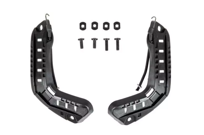 A rail interface system for FAST helmets, allowing installation of additional equipment. The components are fitted with retention cords for installation of NVG system.