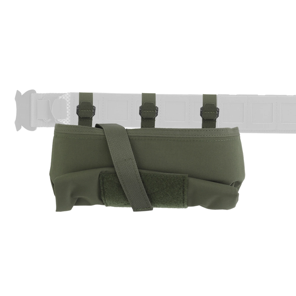 The bag is compatible with the Molle system, which will allow the whole thing to be mounted on a belt. The model has a velcro strap that will allow the whole thing to be folded down when the bag is not in use.