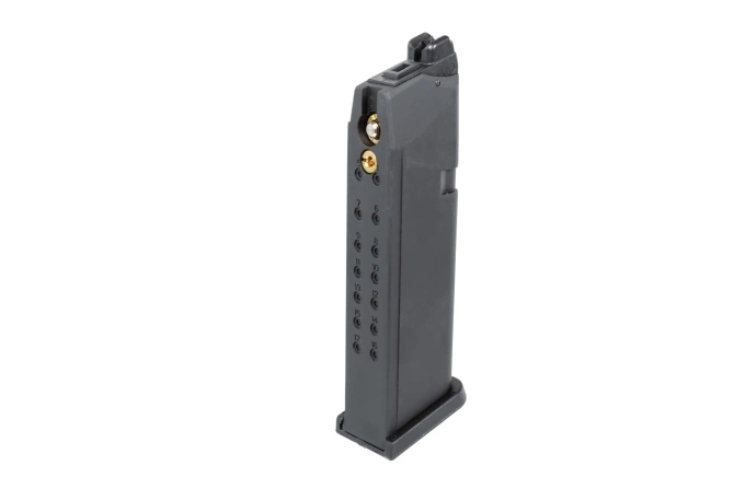 Magazine with a capacity of 23 BBs supplied with green gas for TP22 replicas and G series pistols. Works with magazine release for both left and right handed versions.