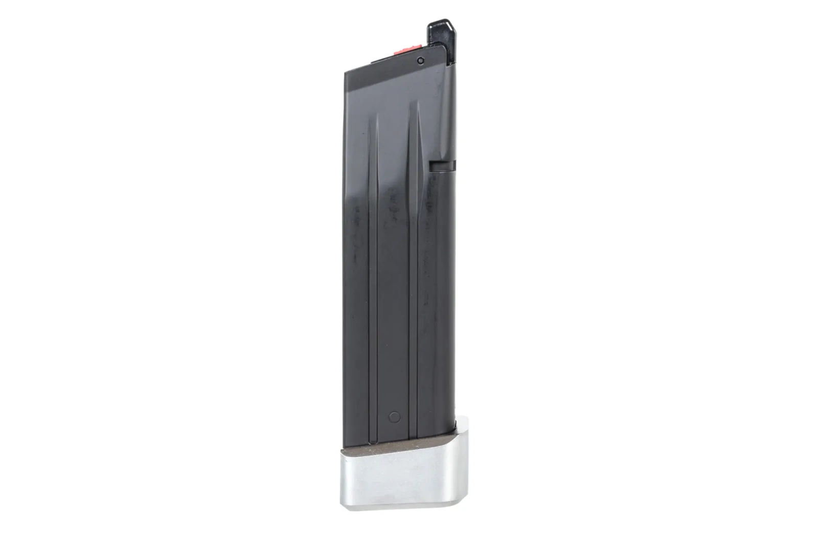 Magazine powered by a CO2 capsule for SAI 2011 replicas. The model is made of durable aluminium which will translate into the durability of the model. In addition to the metal casing, the magazine has an enlarged footplate, which not only facilitates reloading, but also functions as a key that will allow you to screw in a new capsule. The magazine holds 30 rounds and is compatible with, among others, Hi-Capa replicas from AW/TM/WE-Tech