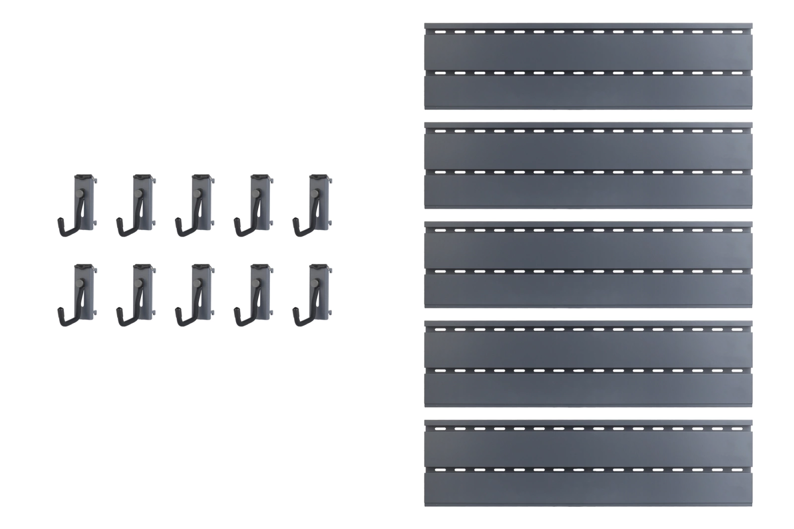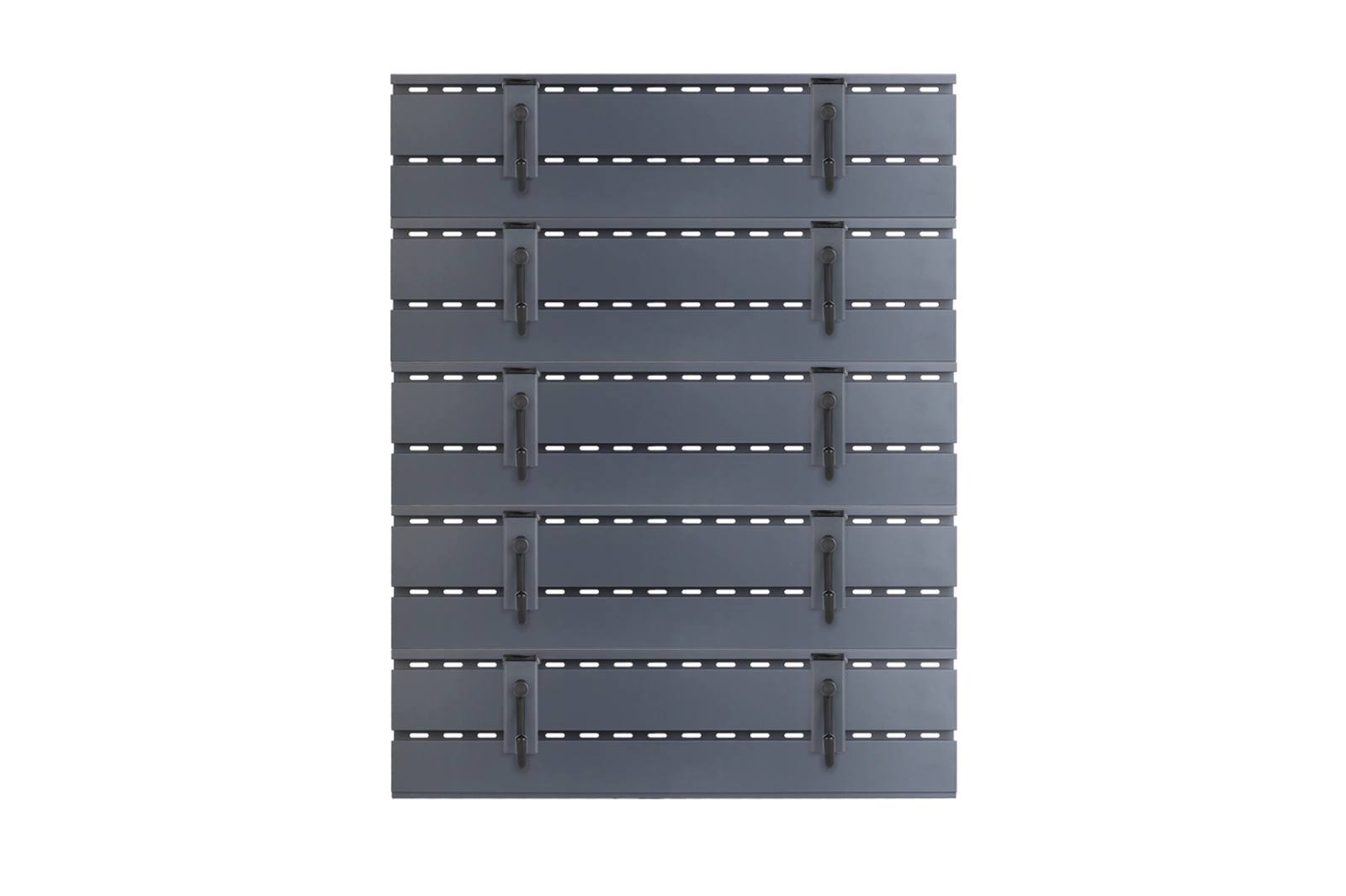 Wall Mounting Panel from the company Specna Arms consists of 5 aluminium mounting plates measuring 60x16 cm (dimensions of a single panel) and additional mounting accessories such as: