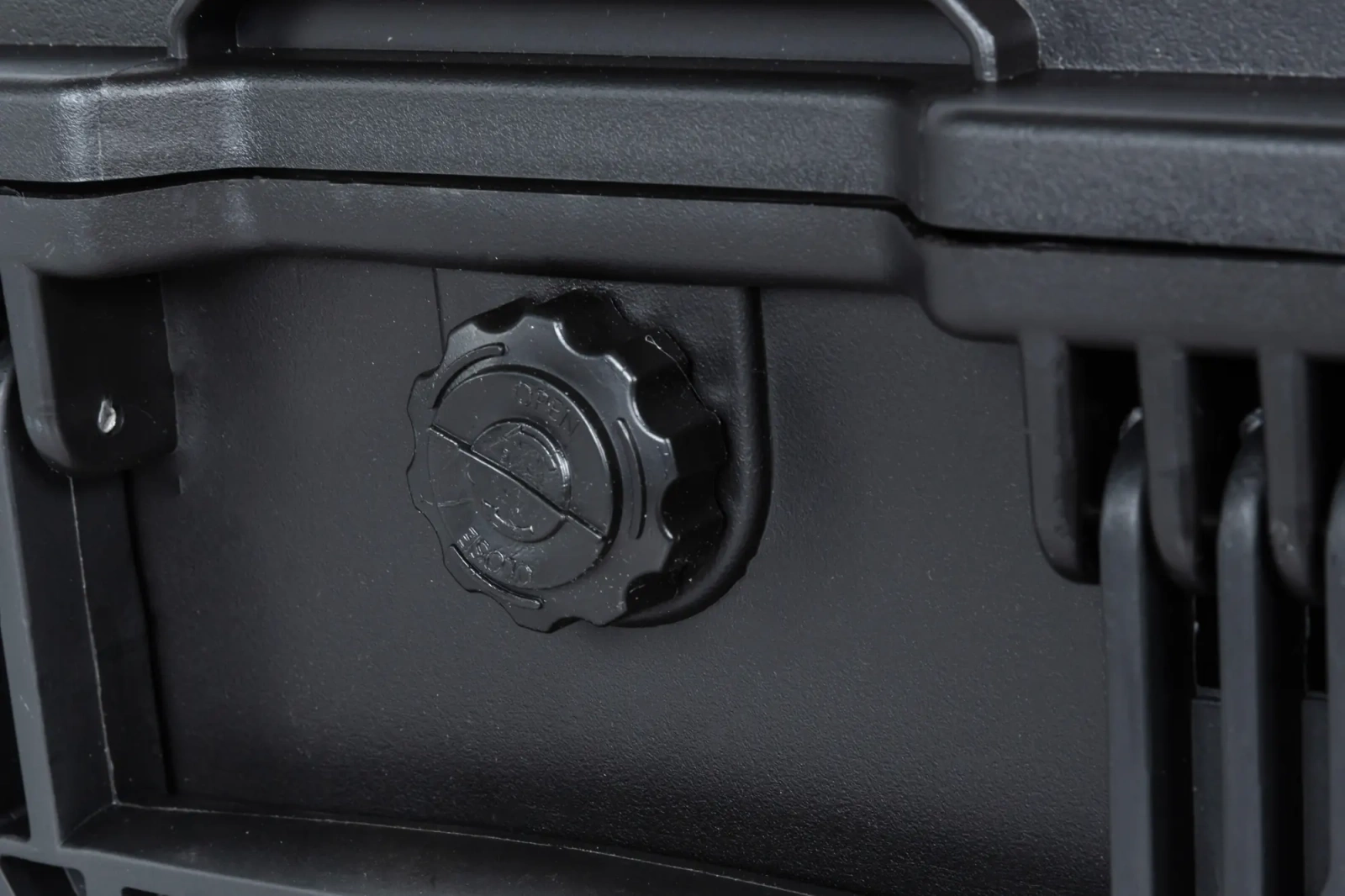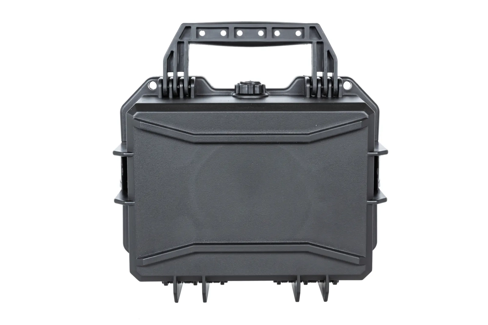 The case is made of durable material, ensuring the safety of the transported equipment. The entire case is closed with two sturdy snap fasteners. For additional security, padlock holes can be used (padlocks must be purchased separately). A sturdy transport grip will help to move the box and a rubber seal fitted on the inside of the flap protects against dirt and dust.