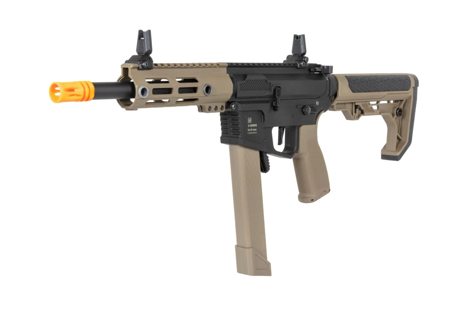 airsoft Specna Arms SA-FX01 FLEX™ HAL ETU Half-Tan submachine gun with orange discharge device