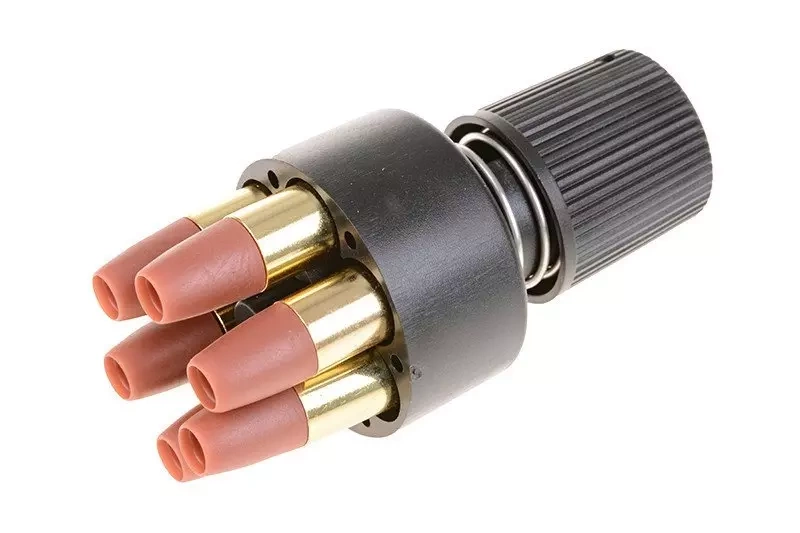 The revolver is supplied with dummy shells, into which 6mm airsoft Bbs are to be installed.