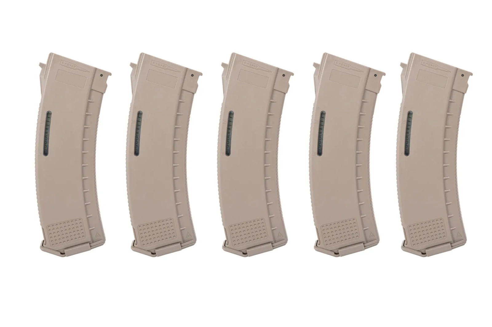 Zestaw 5 magazynków Mid-Cap 130/30 kulek Arcturus EMM AK MOD1 Variable-Cap Windowed do replik AK Flat Dark Earth