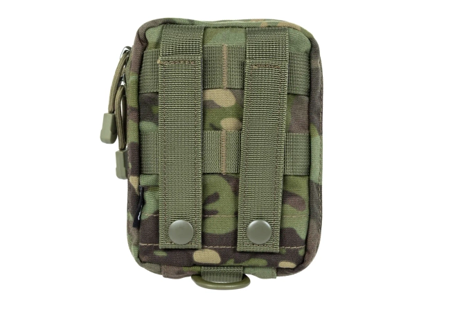 Specna Arms Tactical small first aid kit in durable CORUND™ 500D, closed with a two-pole lock that opens all the way for easy access. The interior features elastic webbing and tie-down cords for easy organisation of transported medical equipment. The model features a MOLLE-compatible attachment, which will allow the product to be attached to waistcoats, belts or backpacks. For better identification, the front has a medical marking. Furthermore, also on the front you will find a throat panel, which will allow the attachment of additional patches or patchs.