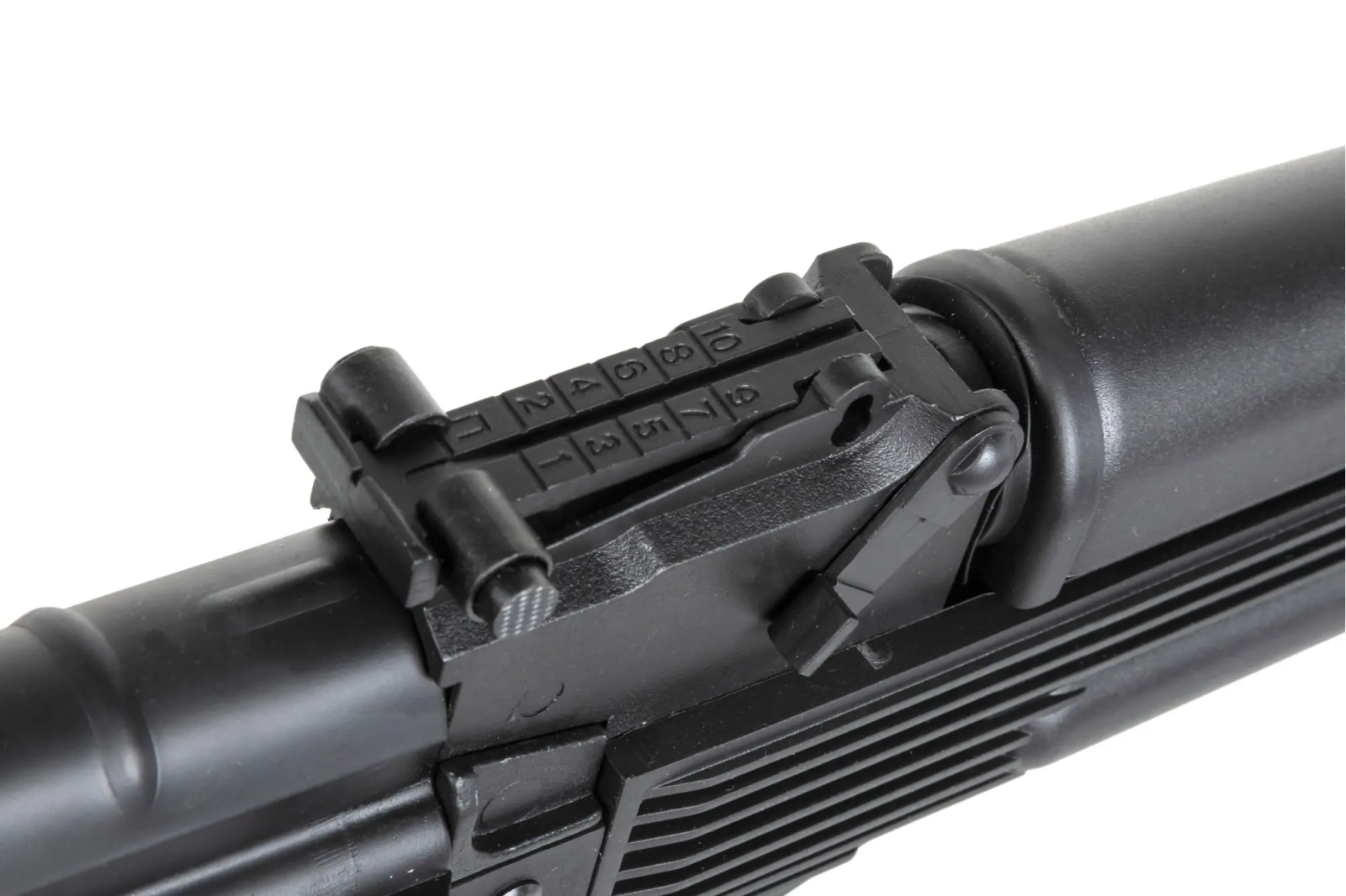 SpecnaArmsJ-Series™ CORE™ Gen.2airsoft rifles the replicas are mainly made of durable nylon fibre-reinforced polymer, which makes the replica very light and comfortable. The most critical parts, such as the barrel holder, dummy slide, barrel base with the sights, handguard holder, barrel and musket are made of zinc and aluminium alloy. The lock chamber cover, safety wing and trigger guard aremade of steel.
