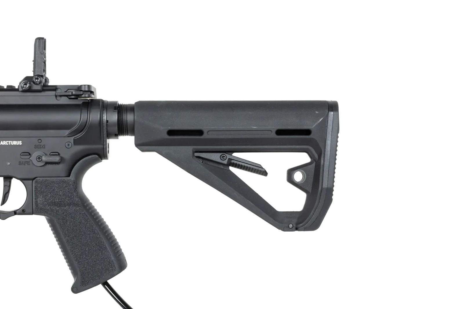 The featured airsoft carbine is the result of a collaboration between two brands, Gate and Arcturus, and the series is the first to have a factory-installed Pulsar D HPA motor . The replica allows you to adjust the magazine capacity to suit your needs or lock the shot when the magazine is not in the socket. The model allows FPS adjustment from 250-650 and rate of fire from 1-40 RPS. The innovative ball feed and closed-bolt system guarantee a straight and repeatable ball flight trajectory even when using the automatic mode. This and much more can be achieved with the dedicated GCS app, which will allow access to many settings and configurations.