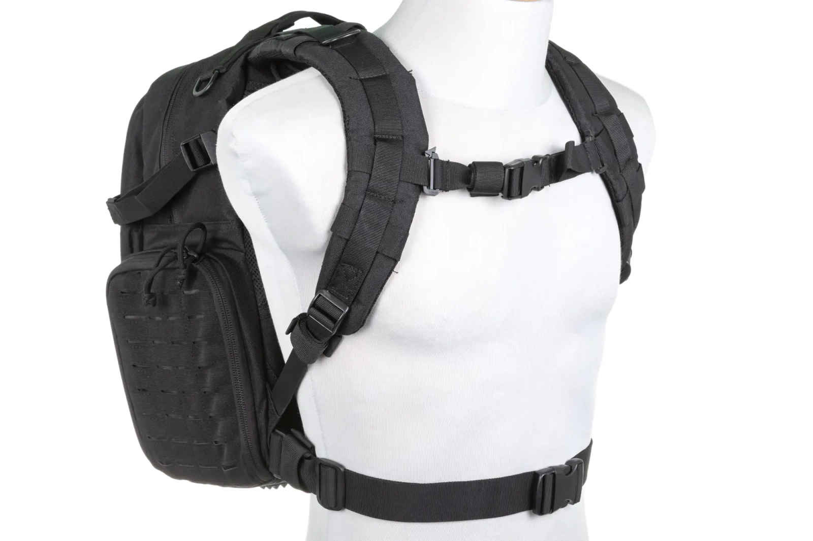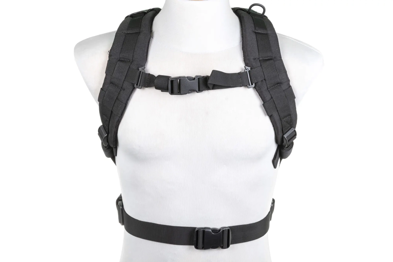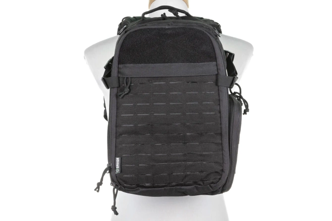 The sides of the backpack are compatible with the MOLLE system thanks to Laser-Cut cut-outs (front and sides of the model). A carry handle and adjustable braces equipped with a hip and chest strap will be responsible for efficient transportation.