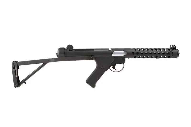 Replika została wyposażona w dedykowany metalowy gearbox, który gwarantuje prędkość wylotową na poziomie ~365 FPS. Stalowy magazynek typu mid-cap o pojemności 110 kulek pozwala na dość długie prowadzenie ognia na jednym magazynku.