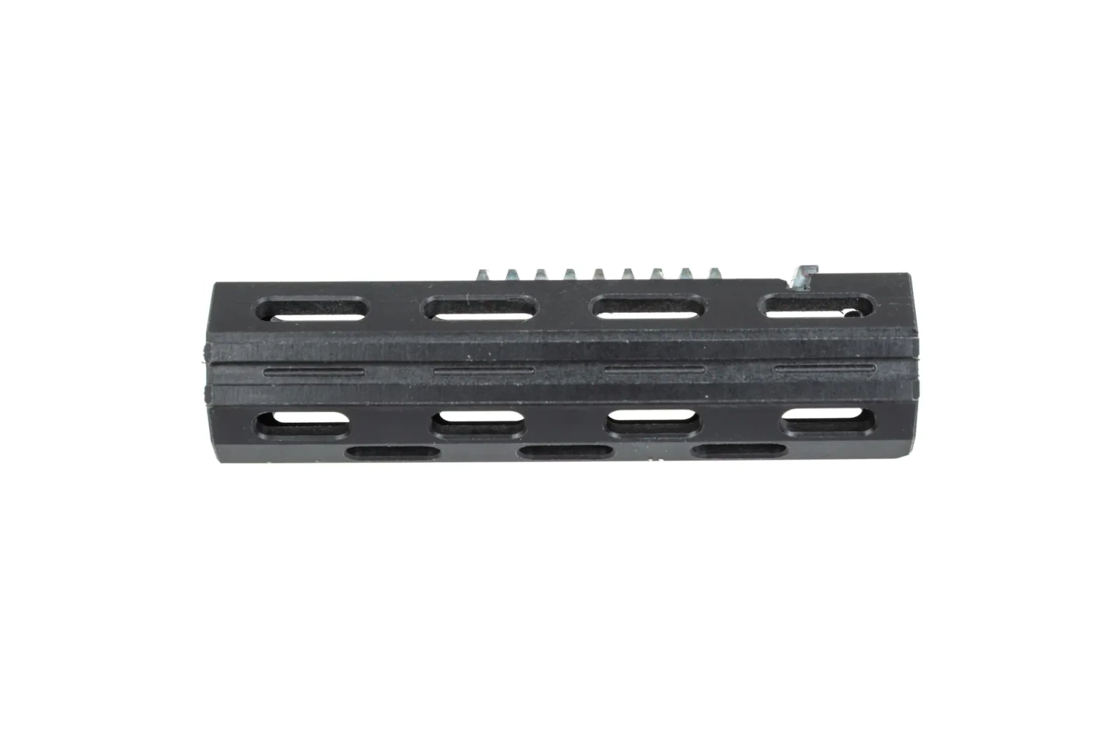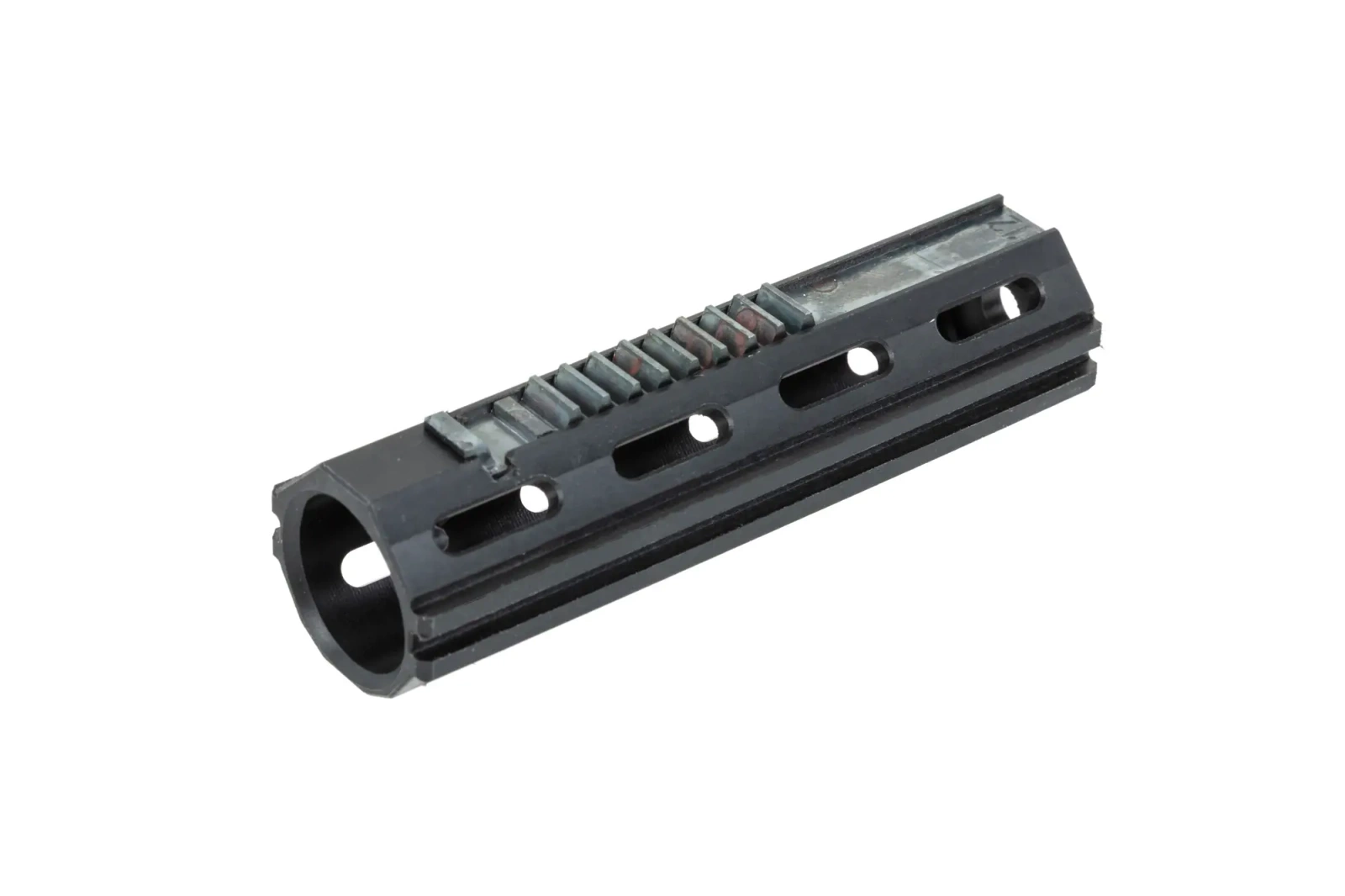 The piston is made of nylon, which has been additionally reinforced with fibreglass (30%). It has been designed with the Short Stroke in mind - it has a steel jaw - 12 teeth, of which the second is cut completely and the third is vestigial - this is to improve AoE. The model is compatible with standard gearboxes and has holes to reduce weight. The rear of the piston has been reinforced, which will allow it to work with stronger springs.