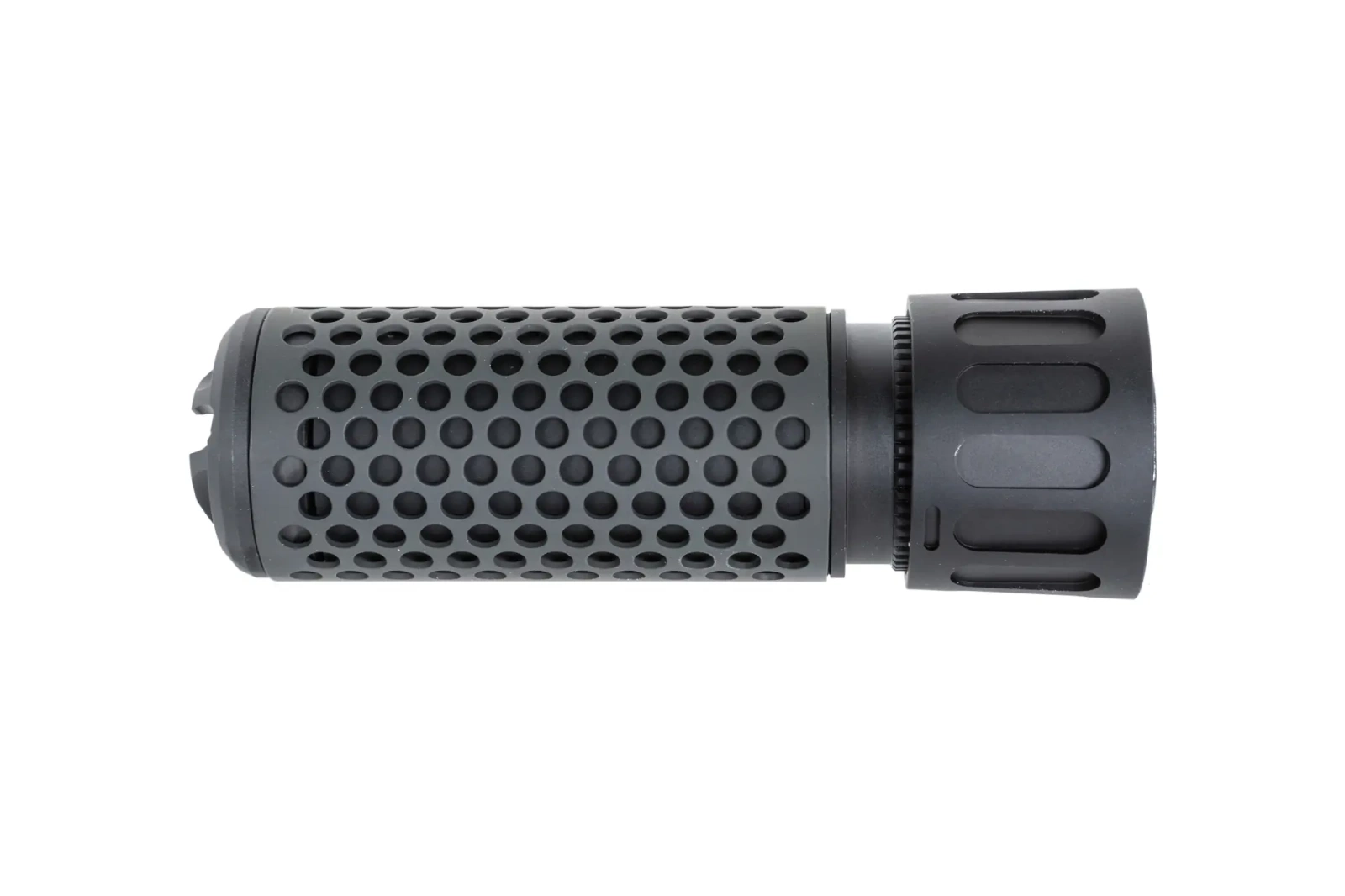 First of all, attention should be drawn to the steel replica QD flame suppressor, which has a 14 mm CCW thread. The replica flame suppressor will enable the second component, the Predator MK II QD replica sound suppressor, to be mounted in no time. The Predator MK II features exceptional strength and durability and at the same time a very interesting, aggressive and unusual appearance. Inside the MKII you will find the Tracer Brighter R