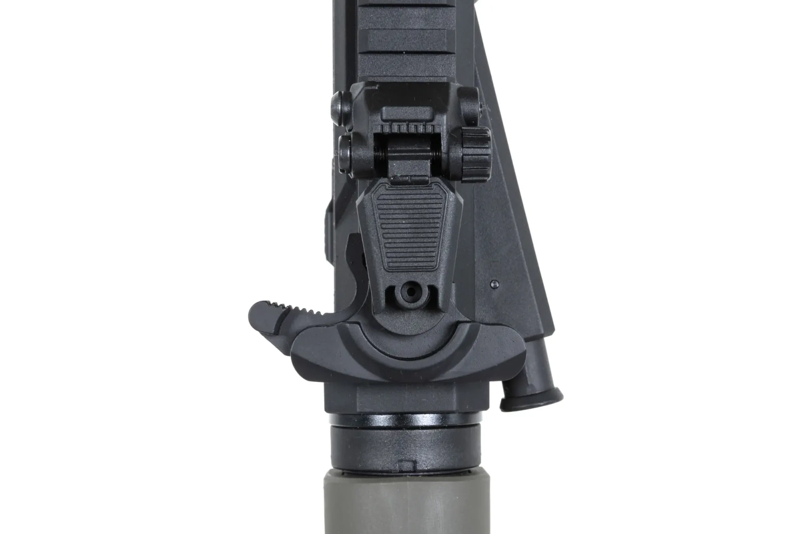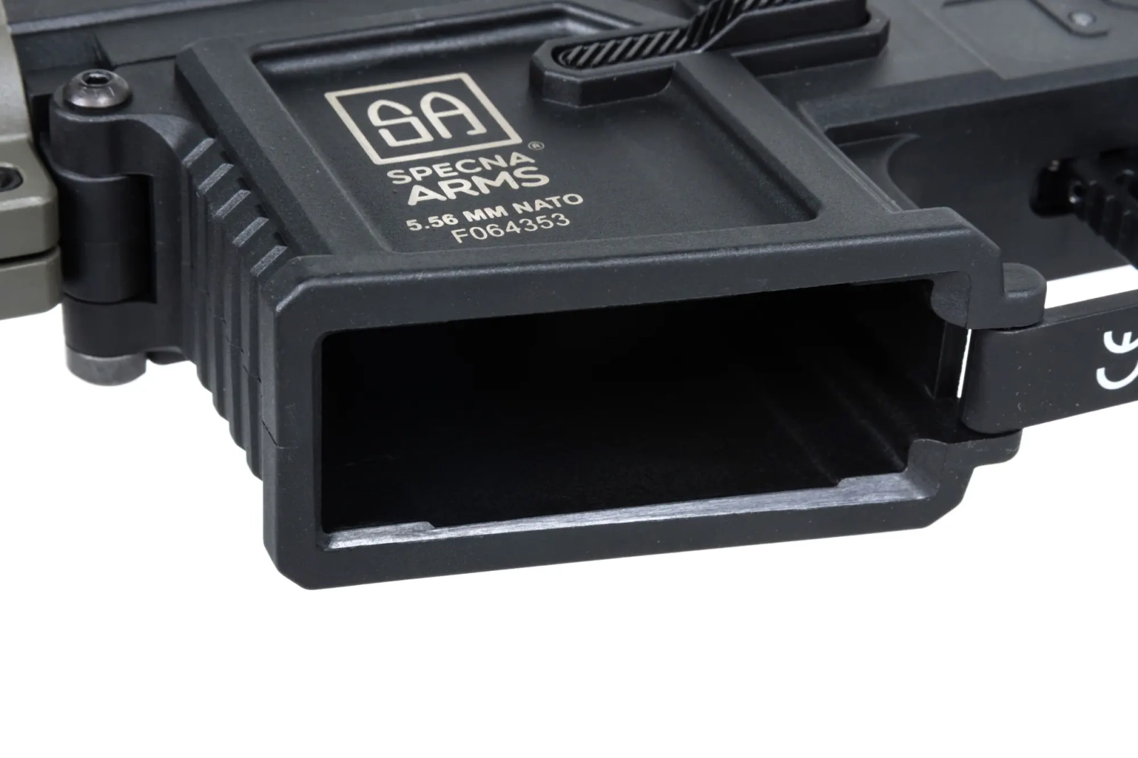 The barrel is a Specna Arms proprietary design combining aesthetic qualities with high ergonomics. Each element has been manufactured and fitted with attention to detail. The model has enlarged manipulators on both sides (selector and magazine release) and a functional bolt-catch.