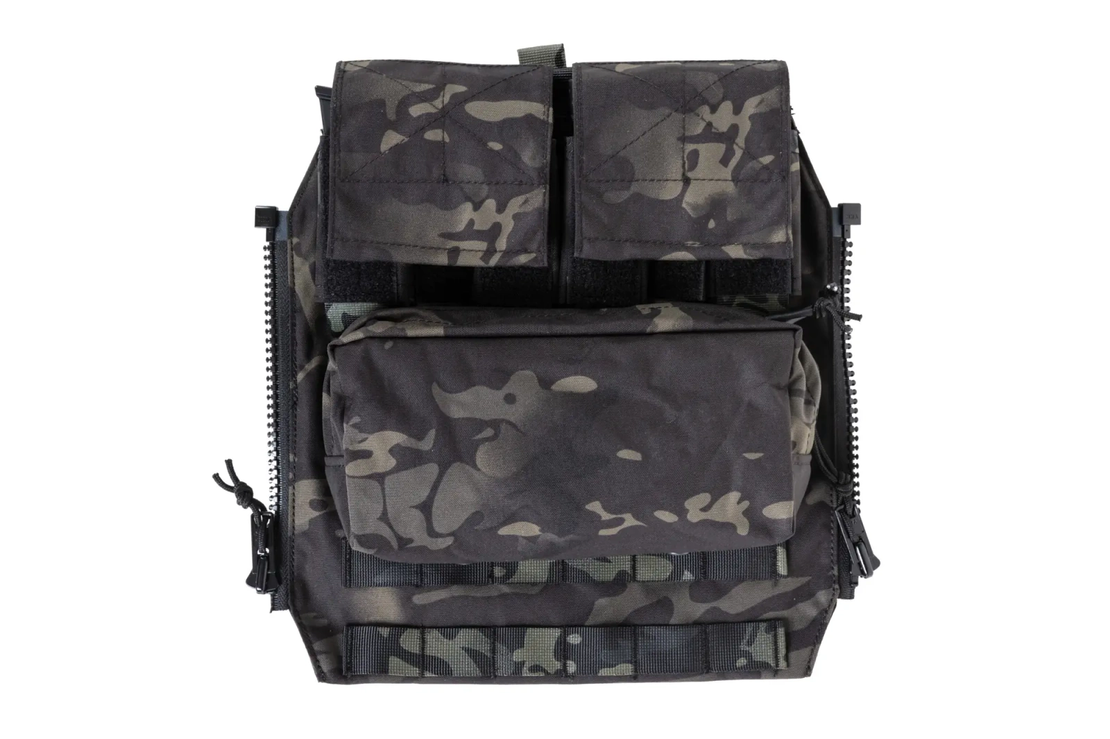 The Buccanner MK I panel is equipped with a main compartment closed with two-pole zips. The compartment will accommodate essential equipment and small items such as a powerbank, wallet, extra bandages or a water bottle. The bottom of the compartment has been fitted with drainage holes. Underneath the compartment, there are two rows of Molle-compatible fasteners, allowing the whole to be expanded with additional accessories. Finally, it is worth mentioning the two pouches (each with 3 compartments) for e.g. pistol magazines, tools, multitool, torch, etc. The pouches are closed with a flap.