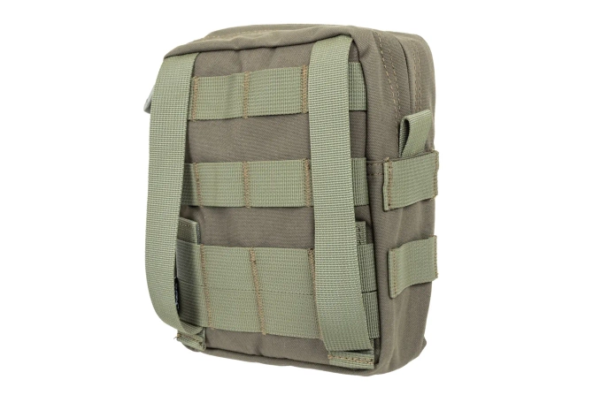 An internal rubberised layer provides water resistance and a front wall covered with MOLLE webbing allows additional equipment to be attached.
