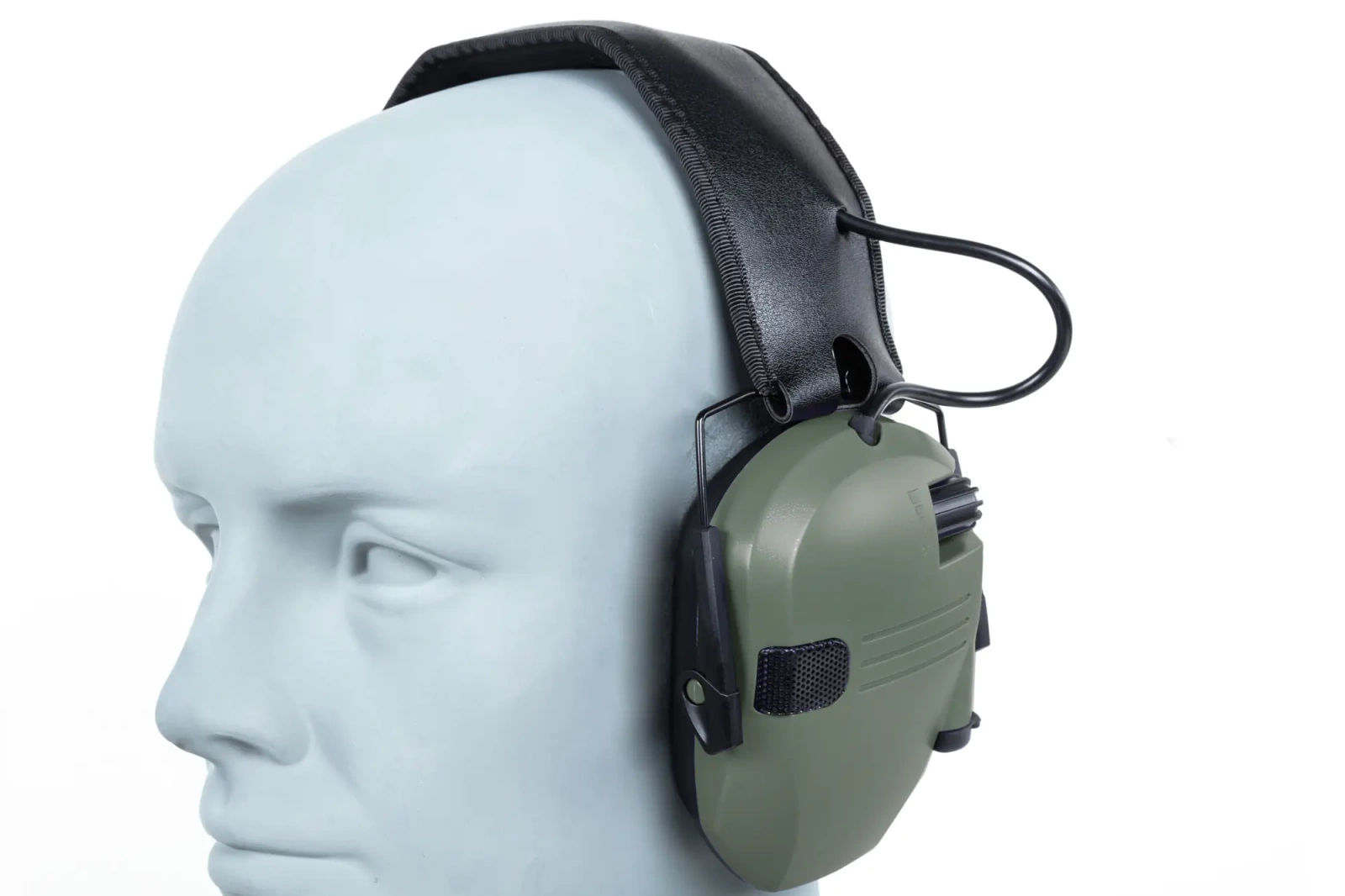 Made by Wosport, theHD-21 active hearing protectors are designed for sports shooters and airsoft players who need on the airsoft field or shooting range to both amplify ambient sounds but also suppress harmful noise. In noisy environments, the HD-21 blocks dangerous sounds, protecting the wearer's hearing. The model has a sizable knob which is responsible for on/off and at the same time boosts the volume of the safe sounds. Due to its size, the knob will be easy to operate, even when wearing thick gloves. The earmuffs are powered by two AAA batteries, which have their socket in one of the shells.