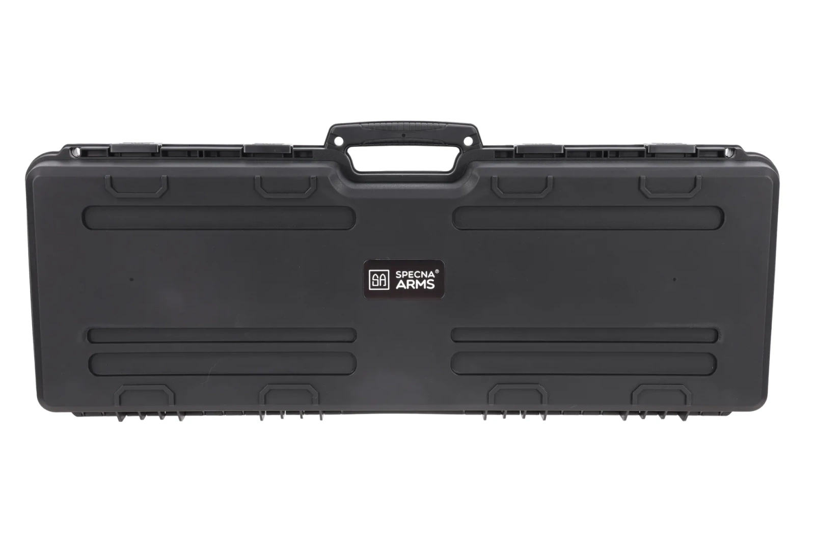 Walizka zamykana jest na 4 zatrzaski, a w chwycie transportowym odnaleźć można dwa otwory, które pozwolą na użycie kłódki (kłódkę należy zakupić osobno). Transportowane przedmioty zostaną zabezpieczone przy pomocy dwóch  ;Walizka posiada wygodny chwyt transportowy, a front walizki jest ozdobiony logiem marki Specna Arms.