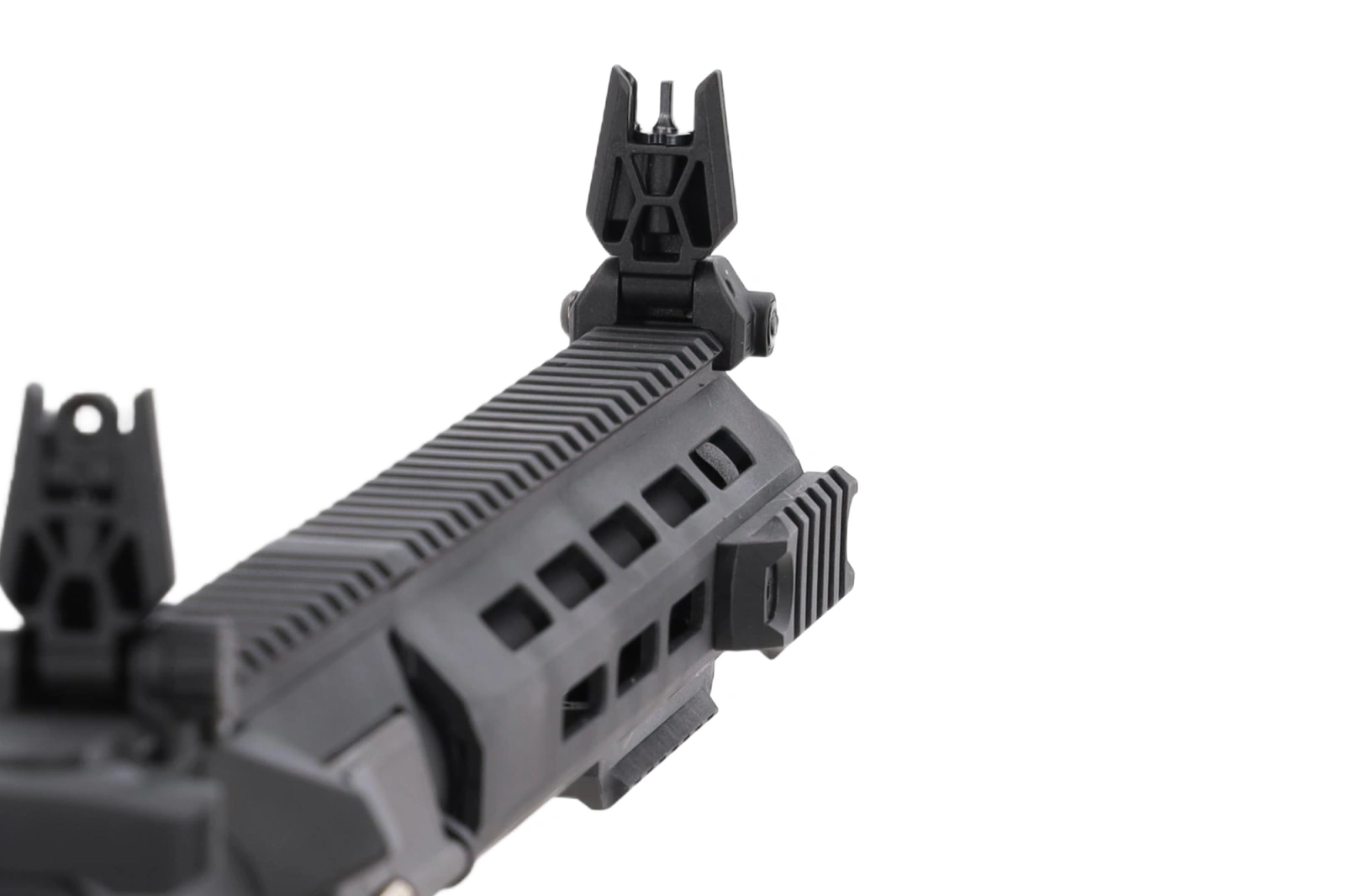 Nylon fibre-reinforced polymer was used to make the barrel, M-LOK front, slide including the Light Ops Stock stock as well as the pistol grip.