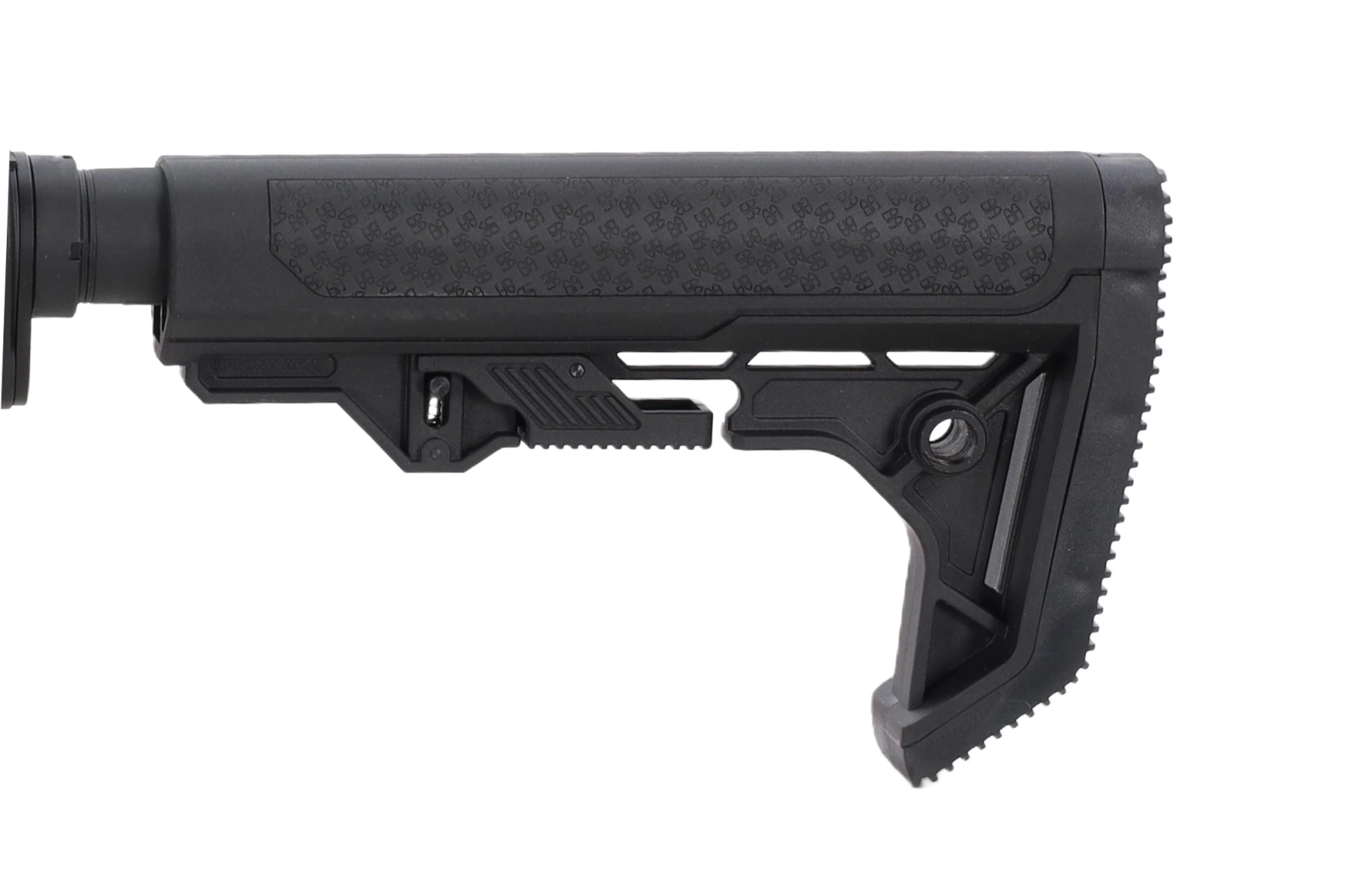 The Light Ops Stock is a minimalist stock with low weight and an impeccable and modernistic design. The model has rubber non-slip stickers on both sides of the cheek piece, and the characteristic curved rubber of the stock foot, which settles comfortably on the shoulder.