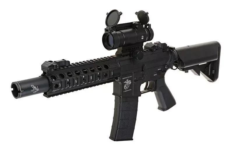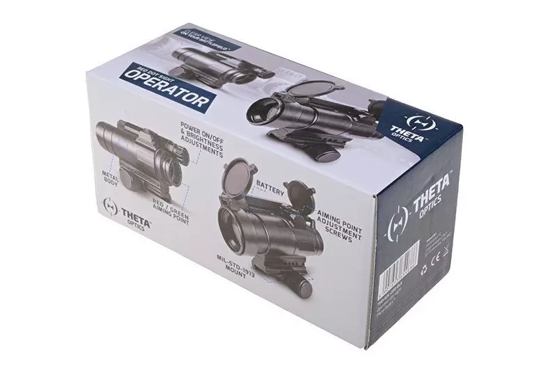 Celownik kolimatorowy Theta Optics™ Operator zamknięty w wytrzymałej metalowej obudowie i zasilany trzema bateriami AG13(brak w zestawie), umożliwia użycie zielonej lub czerwonej plamki celowniczej do prowadzenia działań zarówno dziennych, jak i nocnych. Punkt celowniczy możemy płynnie wyregulować w pionie i poziomie, posiada on także kilka stopni natężenia. Montowany na standardowej szynie RIS 22mm, kolimator pozwala na błyskawiczne i precyzyjne celowanie.