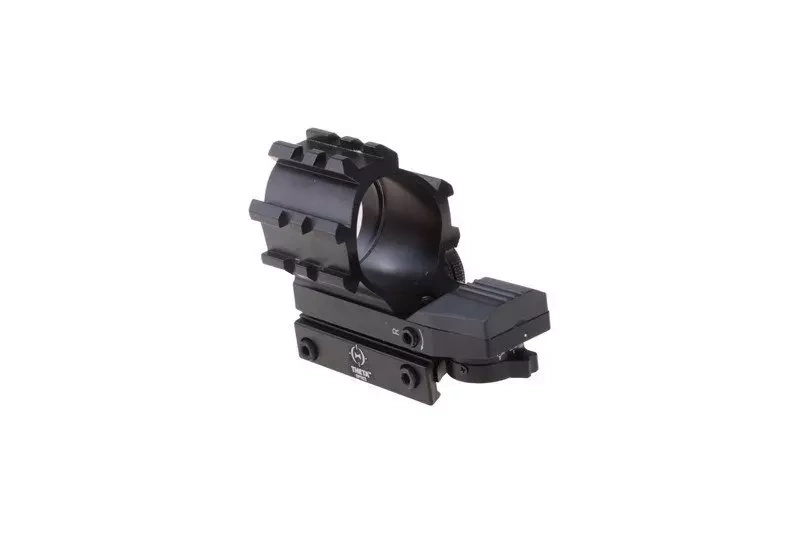 Celownik kolimatorowy Theta Optics™ RIS Open zasilany baterią CR1620, umożliwia użycie zielonej lub czerwonej plamki celowniczej do prowadzenia działań zarówno dziennych, jak i nocnych. Punkt celowniczy możemy płynnie wyregulować w pionie i poziomie, posiada on także kilka stopni natężenia. Użytkownik posiada możliwość wyboru pomiędzy czterema różnymi punktami celowniczymi. Montowany na standardowej szynie RIS 22mm, kolimator pozwala na błyskawiczne i precyzyjne celowanie. Dodatkowe 3 szyny RIS na samym kolimatorze pozwalają na montaż dodatkowych akcesoriów takich jak np. laser.
