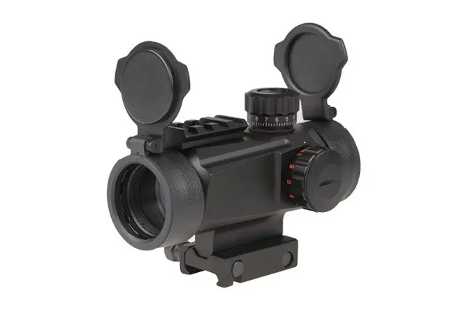 Celownik kolimatorowy Theta Optics™ Open zasilany baterią CR2032, umożliwia użycie zielonej lub czerwonej plamki celowniczej do prowadzenia działań zarówno dziennych, jak i nocnych. Punkt celowniczy możemy płynnie wyregulować w pionie i poziomie dzięki wygodnym bębnom na obudowie - podobnie jak w lunetach! Posiada on także kilka stopni natężenia. Montowany na standardowej szynie RIS 22mm, kolimator pozwala na błyskawiczne i precyzyjne celowanie.