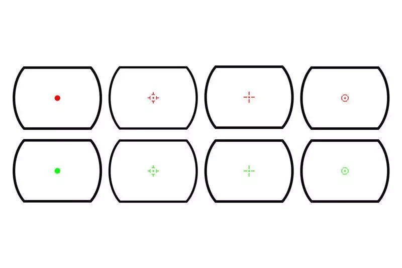 Kolimator wyświetla punkt celowniczy w kolorze czerwonym lub zielonym, każdy z nich w kilku poziomach jasności. Do wyboru mamy aż 4 różne typy punktów celowniczych. Dwie śruby nastawne umożliwiają płynną regulację w pionie i w poziomie. Do ochrony szkła dołączono gumową nakładkę ochronną.