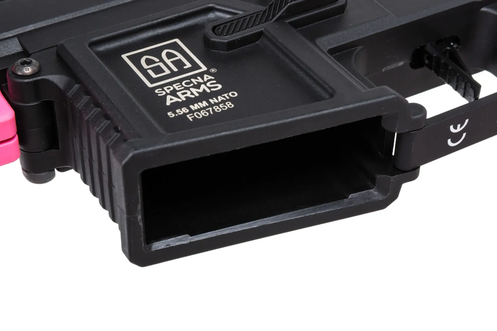 The barrel is a Specna Arms proprietary design combining aesthetic qualities with high ergonomics. Each element has been manufactured and fitted with attention to detail. The model has enlarged manipulators on both sides (selector and magazine release) and a functional bolt-catch.