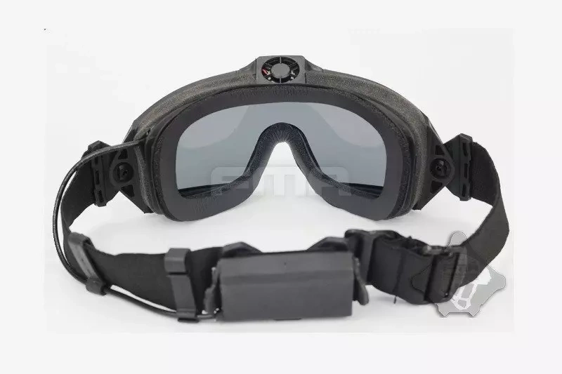 Innowacyjne wentylowane gogle produkcji FMA. Wbudowany wentylator zapewnia poprawioną cyrkulację powietrza dzięki czemu szansa na zaparowanie wizjera spada do minimum. Zasilanie stanowią dwie baterie AAA (brak w zestawie).