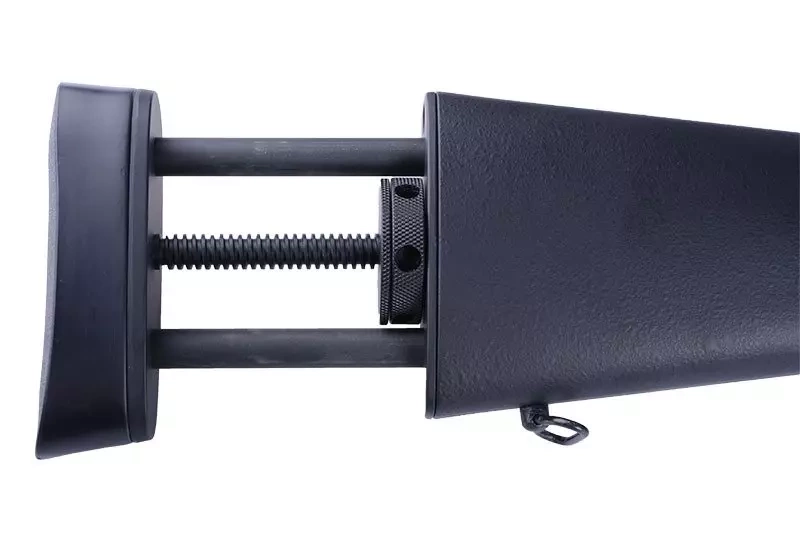 CM702A replica manufactured by CM is a spring replica of a popular bolt-action sniper rifle. Replica's body is very solid and was manufactured from high quality reinforced polymer. Stock is ended by a foot made from thick rubber. What's interesting - stock foot is fully adjustable, what makes it easier to fit it perfectly into shooter's preferences. On the body you can also find two metal mounts for weapon sling or bipod. Replica is delivered in two parts what makes trainsporting it easier. Placing them together literally takes a while and requires the use of several hex screws..