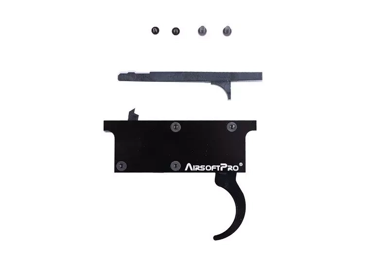 Mocny i niezawodny zespół spustowy to podstawa w tuningowanych replikach snajperskich. W celu uniknięcia uszkodzeń mechanizmu podczas stosowania mocniejszych sprężyn, warto zastosować części maksymalnie wzmocnione, do których produkcji - jak w przypadku AirsoftPro - użyto m. in. stali oraz aluminium.