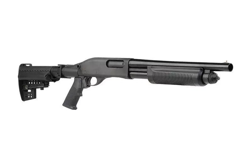 The shotgun was made with the utmost care for details, its construction is 100% metal and steel made, aside from the adjustable stock and cradle - these were made from high quality polymer and their mechanisms were made from metal. Well-fitting together parts and materials used in the production process make M870 by PPS Airsoft give out a truly solid impression as soon as it is in one’s hands. It is an experience of holding a live firearm, not an airsoft replica. This model features a foldable stock with length regulation (4 positions) in order to easily adapt to any kind of operation.