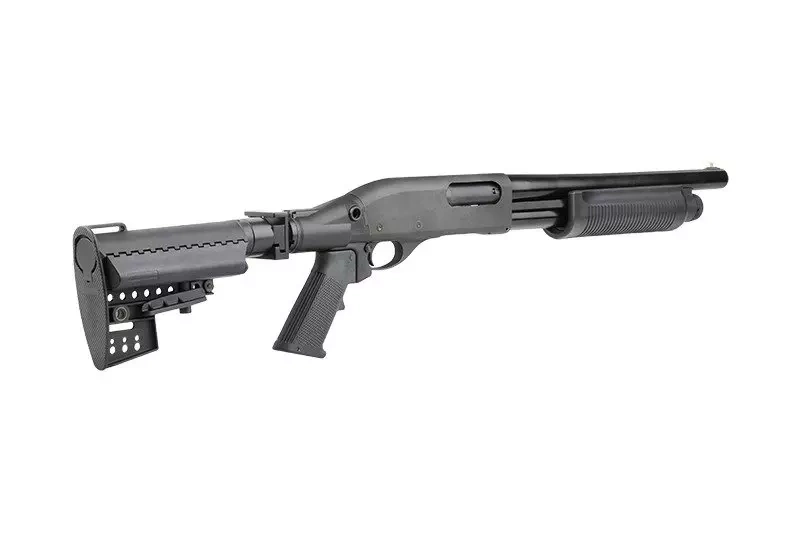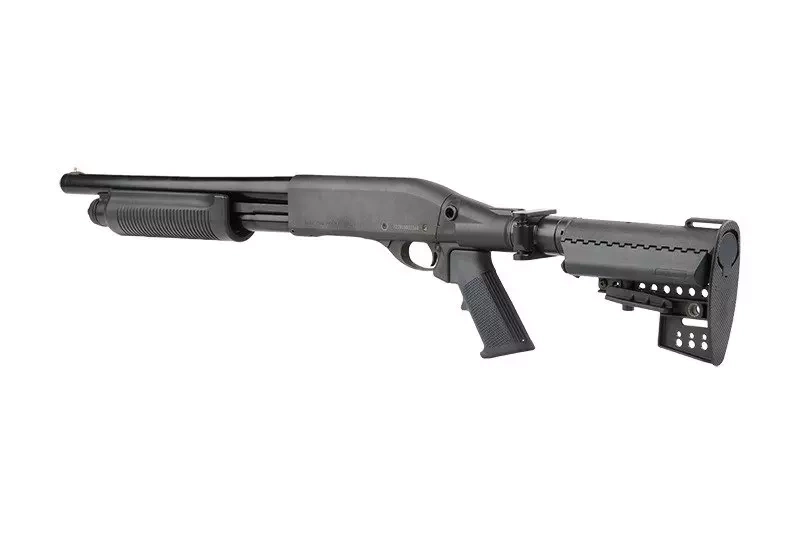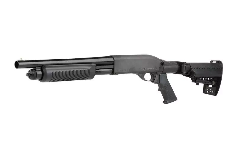 This is a gas powered replica (green gas) that ejects an empty shell after each shot. The reloading process is very smooth - the cradle along with the mechanism operate very smoothly and the sound that accompanies the process is also pleasant to the ear. The shotgun’s capacity is 4 shells + 1 in the chamber.