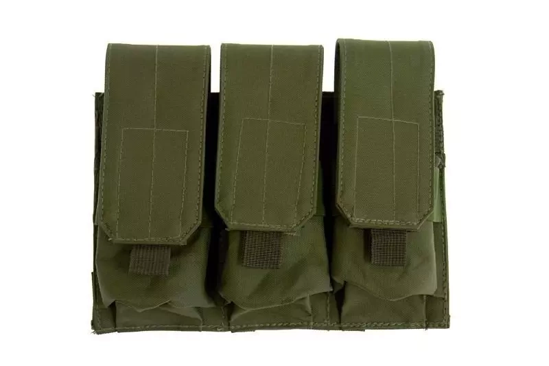 Pouch can carry six M4/M16 magazines in three internal pouches, fastened with hook&loop strap. Pouch is made of very strong nylon. PALLS/MOLLE system allows to install it at wide variety of vests, leg panels and belts.
