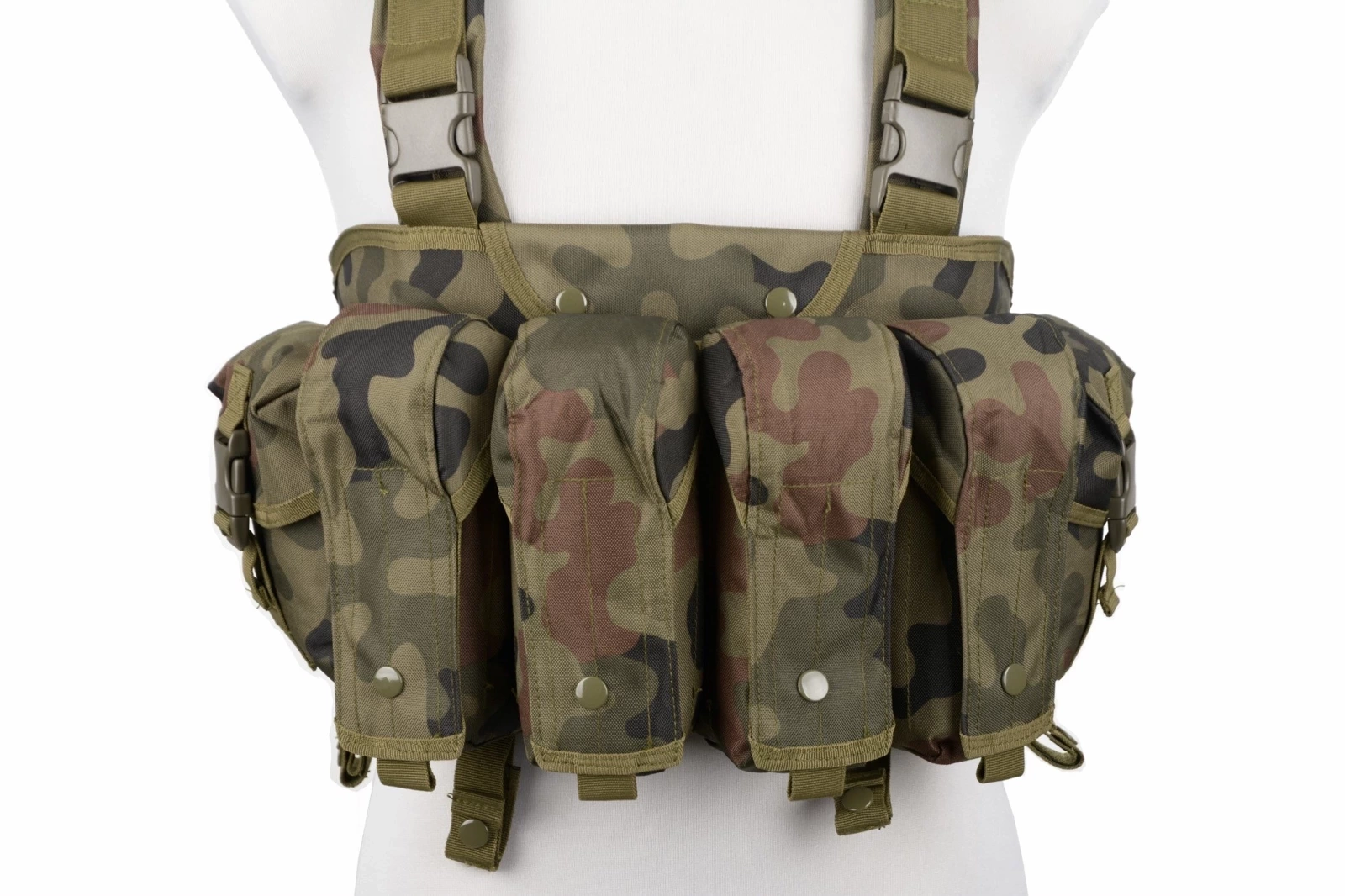 A light and durable vest made from nylon capable of holding 8 AK / M4 magazines. On the sides of the vest are 2 universal pouches that can be used for storing grenades, a radio or BB packs. Each pouch is equipped with a drainage hole that allows to remove accumulated water.
