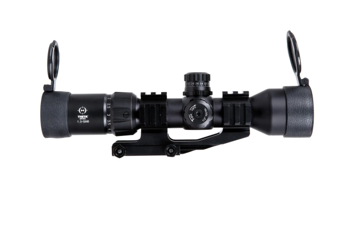 Laser 1.5-5X40 BE is a model by Theta Optics™, which. features high-quality, clear optics. Thanks to adjustable magnification it is suitable for shooting at various distances. The scope is enclosed in a robust metal housing and is an example of good quality optics at a reasonable price. .