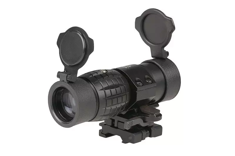 "Magnifier" has a montage with a hinge, which allows you to deviate it aside when it's not using. Same magnifier for montage on RIS rail is installed on the stable QD latch.