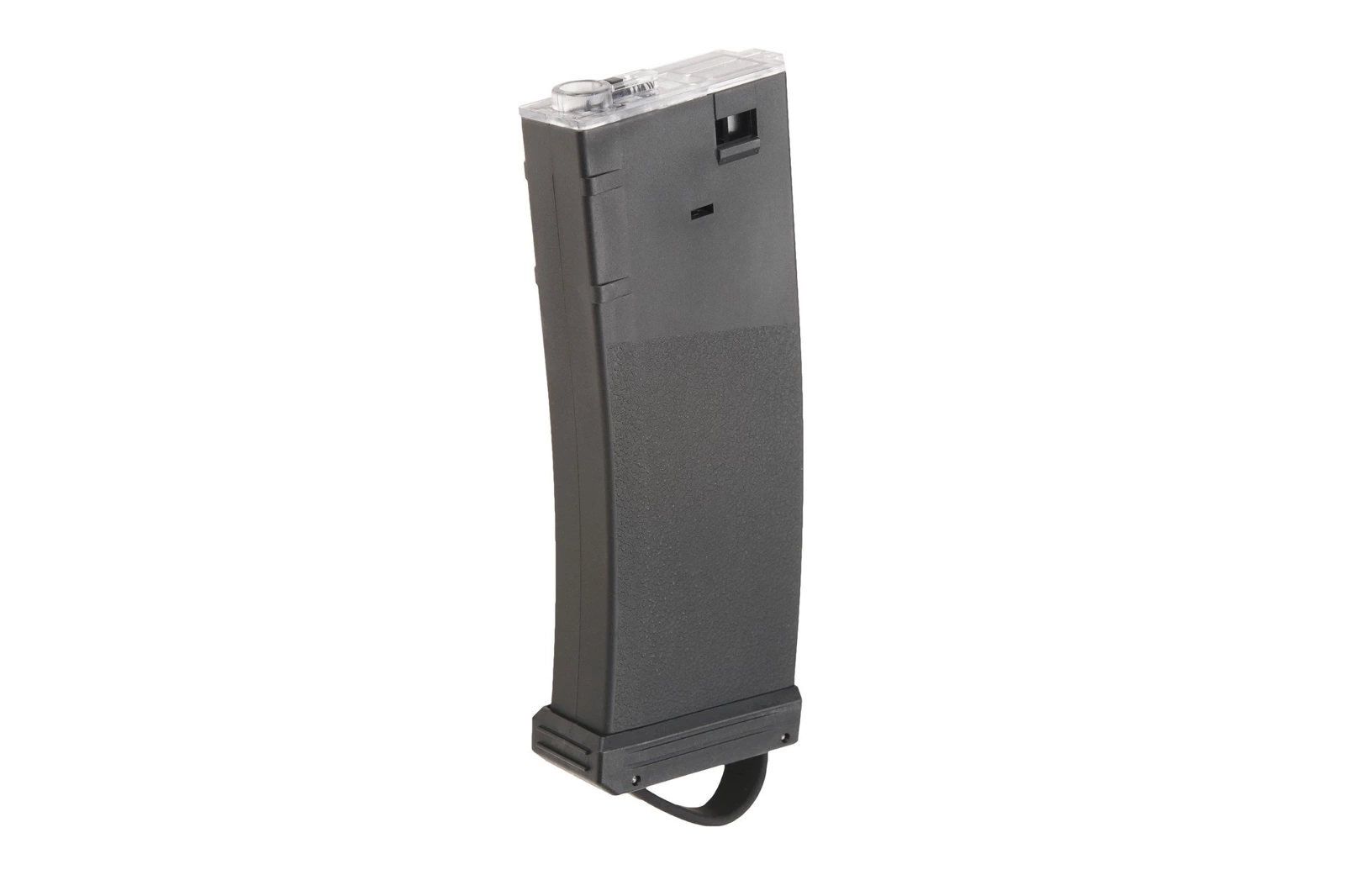 A magazine with LED illumination for use with standard and tracer BBs. The illumination is activated by itself once the magazine has been inserted into a replica. Features an elastic rubber finish that serves as a magpul, which simplifies taking out the magazine from a pouch.