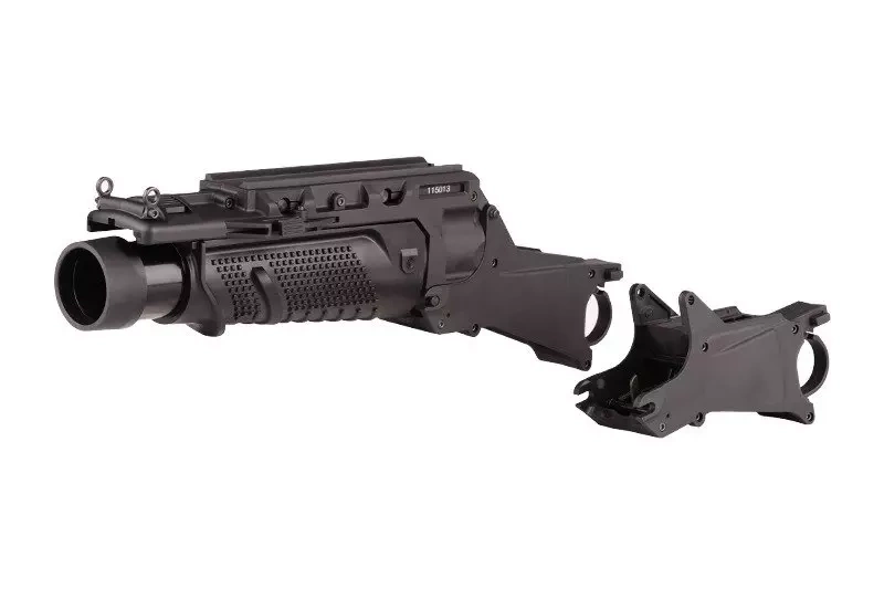 The set comes with two mounts of different length (180 and 192 mm) so there is no need to worry about adjusting the product to fit a replica. The grenade launcher itself is attached to a RIS rail via QD mounts.