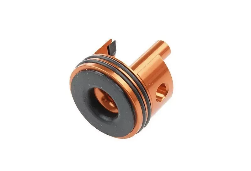 Głowica cylindra przeznaczona do montażu w replikach typu AUG. Wykonana z aluminium przy pomocy technologii CNC, co gwarantuje wysoką precyzję wykonania. Posiada gumowe elementy amortyzujące. W efekcie uzyskano głowicę o wyjątkowo dobrej wytrzymałości, przy jednoczesnym zachowaniu niskiej wagi.