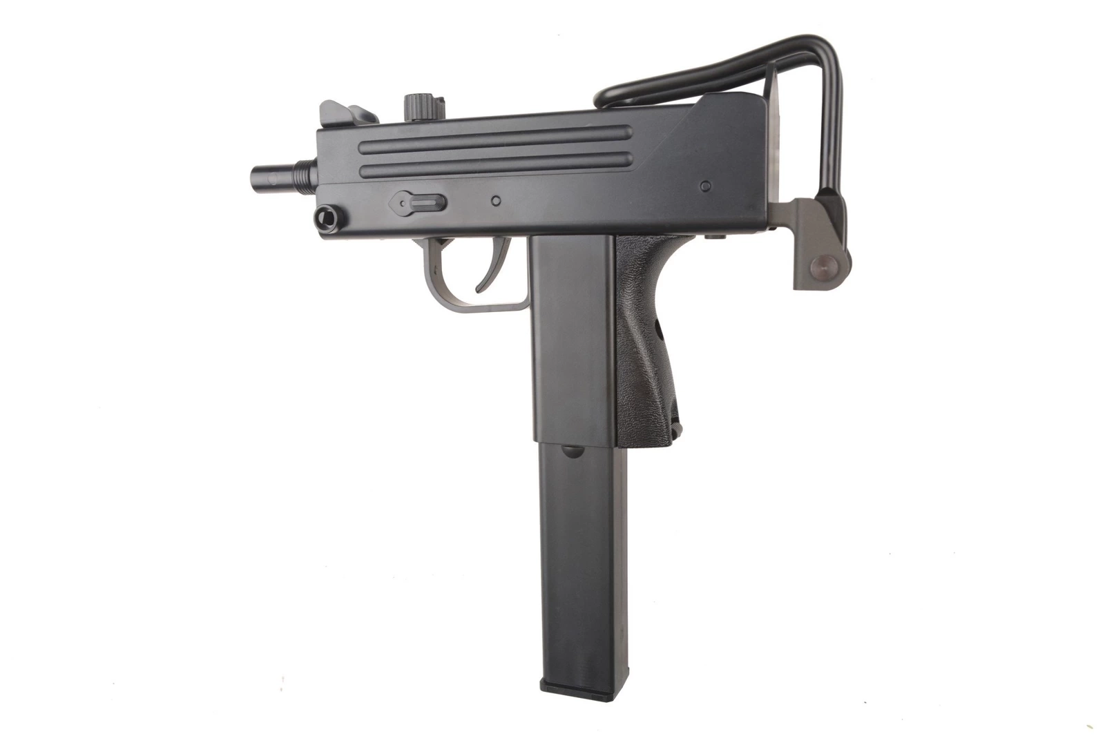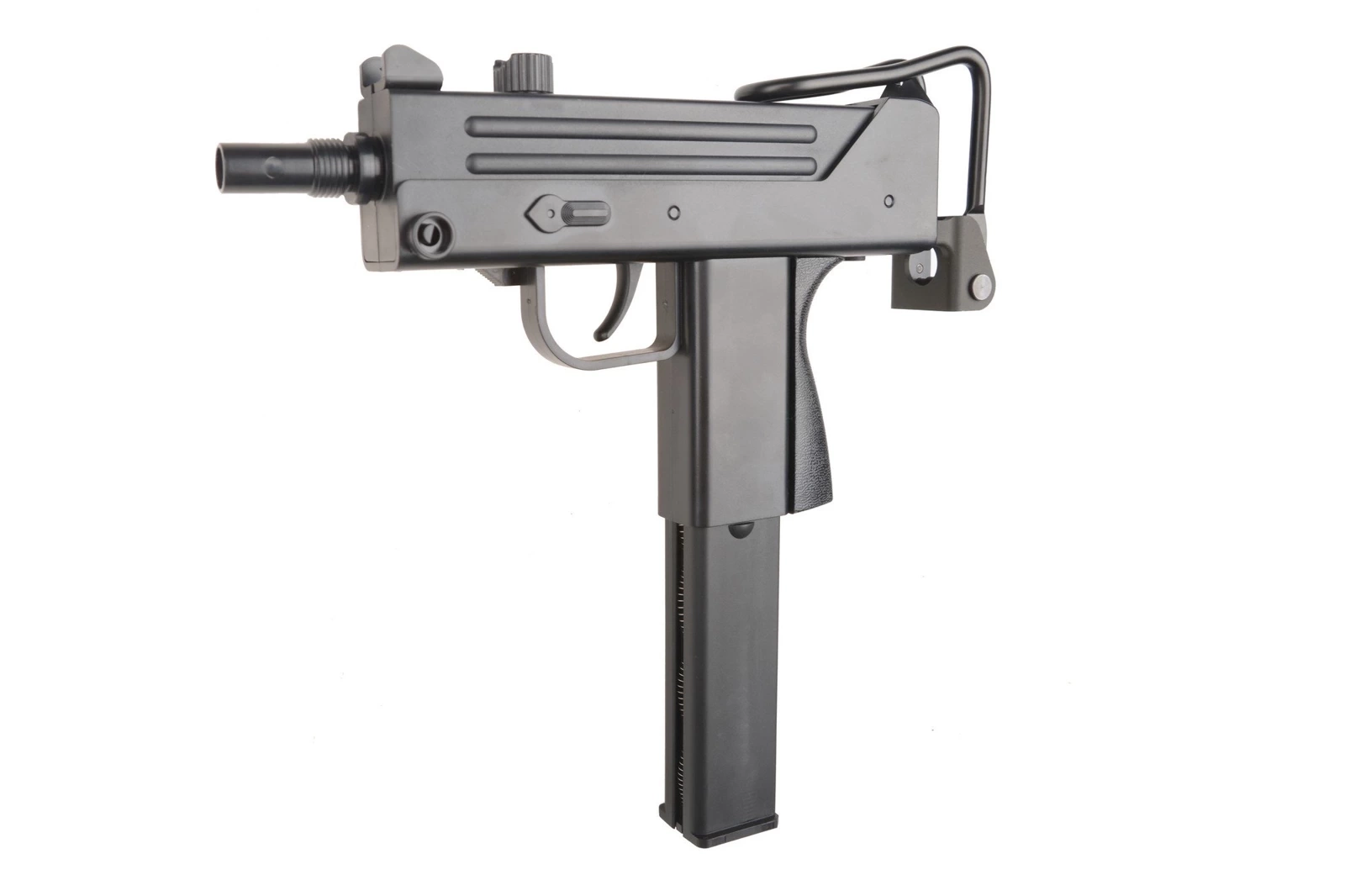 The receiver of M11 was made from ABS which makes it incredibly handy. The model also features a foldable stock for better stabilization during firing. It is made entirely from metal and unfolds in two planes, the extendable rail and bendable stock pad provide an arm rest. Implementation of trigger safety was also not forgotten for better safety and increased realism.