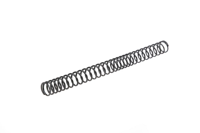 A steel spring with irregular pitch intended for installation in any electric replica (also in spring-action replicas compatible with AEG springs) equipped with a Tokyo Marui standard gearbox.