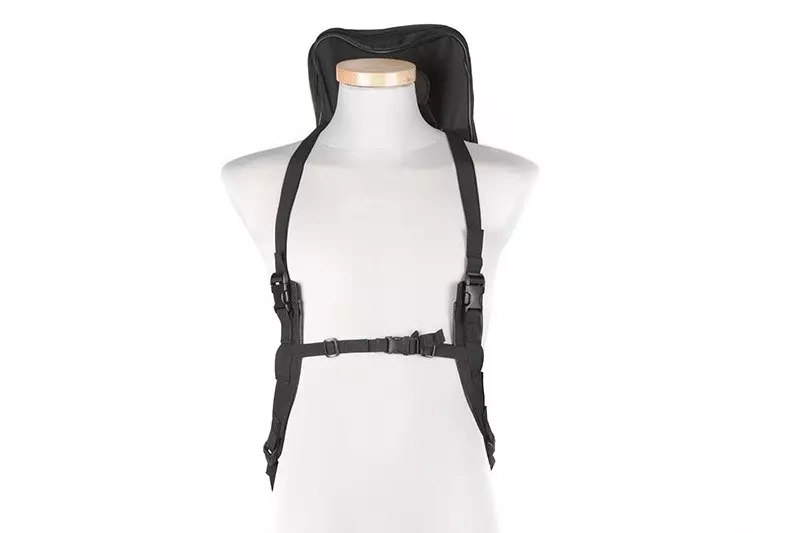 Additionally, the cover is equipped with inner pockets for magazines and other accessories which are required during a skirmish. On the back part of the cover there is a zipper which is placed across the cover and which allows access to a flat pocket located on the cover's surface. The cover can be transported both, in a hand, like bag and on the back like a backpack.