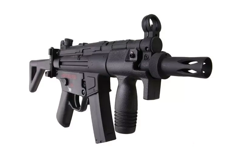 A very well made and fitted replica of a PDW sub-machinegun. The replica’s body, the outer barrel, the iron aiming sights and the flash-hider are made of metal while the stock, the pistol grip and the front-grip are made of nylon. The flash-hider and the stock can be quickly and easily detached in order to gain a even more compact replica.