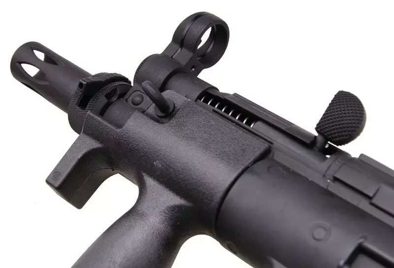 The compact dimensions, good balance and the overall compactness makes the CM041PDW a perfect replica for short distances and the CQB type skirmishes. The advantages of this replica are strengthened by the ambidextrous firing mode selector lever which allows for a comfortable and free change of the firing mode both with the left and right hand. What is important, the iron aiming sights are fully adjustable.