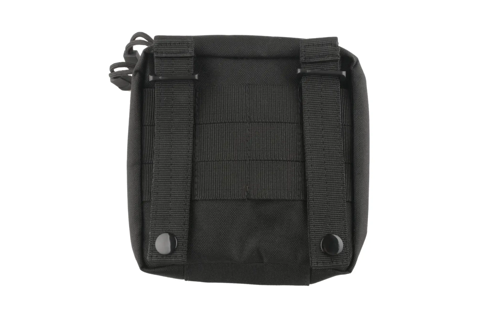 A universal medical pouch made from nylon is an excellent base for creation of a first aid kit. It is equipped with a mount for MOLLE webbing straps and was rubberized on the outside, which provides limited water resistance.