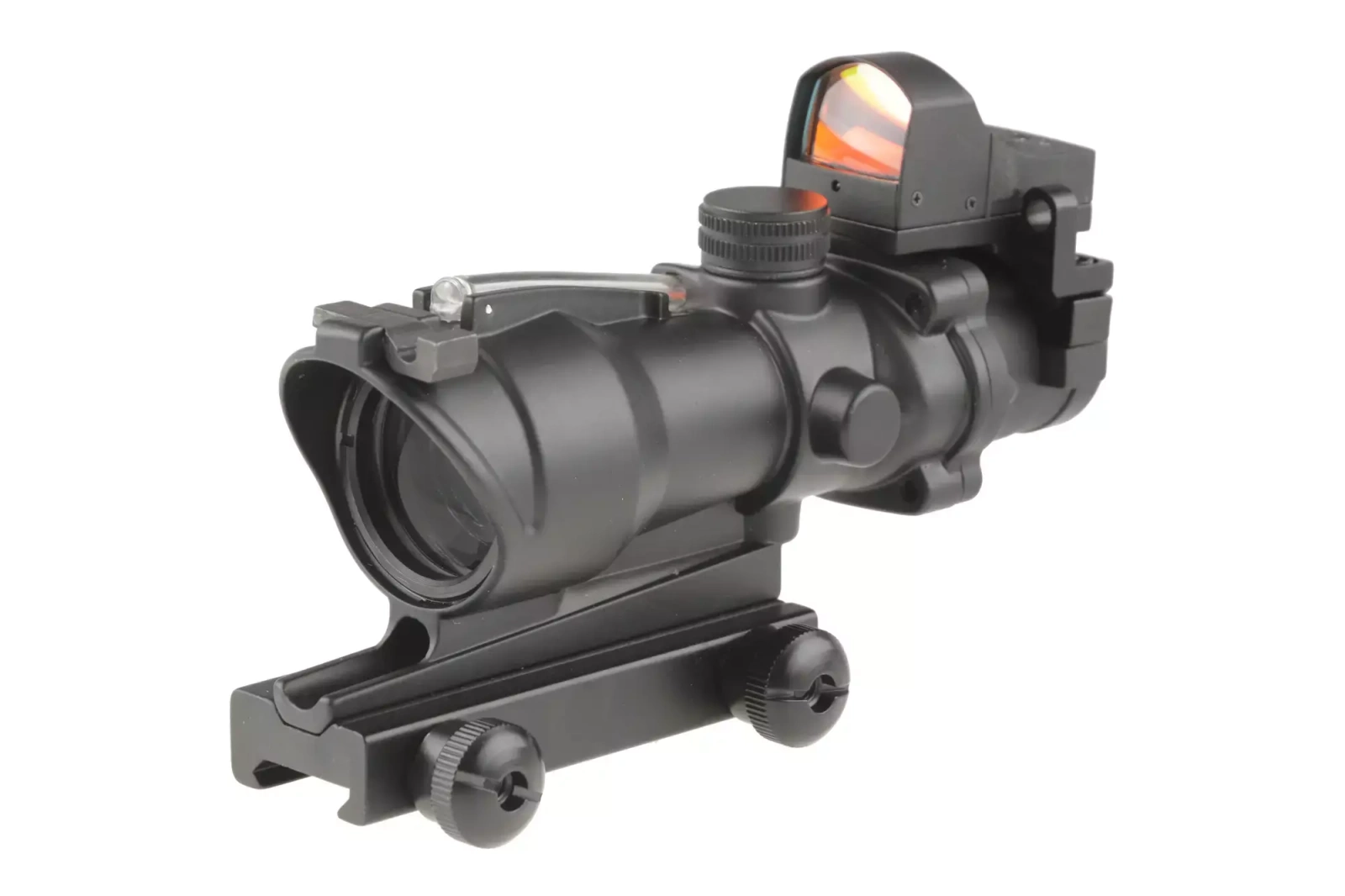 Additionally, a modified collimator Mini powered by a CR2032 battery is mounted on the scope. It enables the use of a red dot sight for short range operations and allows for instant and precise aiming. The collimator has a sensor so that it is always ready for use without the need for manual activation. An additional base is included so that it is possible to use the collimator without a scope.