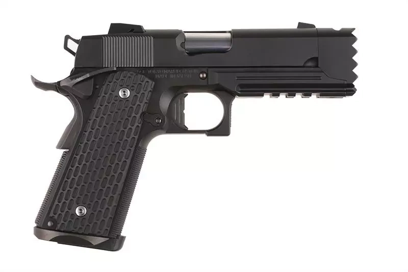 Night Warrior manufactured by the iconic Tokyo Marui company. Like most TM small arms replicas, the presented Strike Warrior was also made predominantly of high quality polymer. Metal is the magazine here, as well as a few small parts (including the locking mechanism). Both the shell and the lock of the pistol are made of polymer. The grip covered with a non-slip texture will provide great comfort in use. Under the lock there is a 22mm RIS rail with a length of 65mm, allowing the mounting of additional accessories such as a torch or a laser sight.