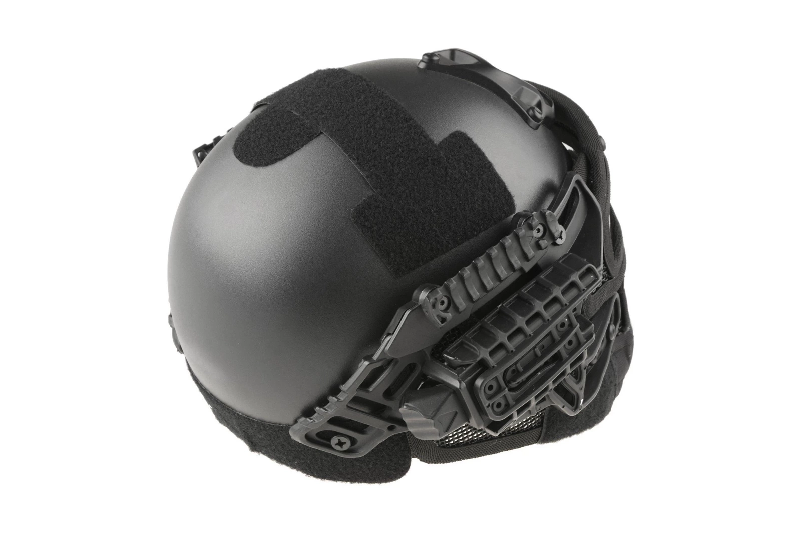 On the outside the helmet has an integrated night vision goggles mount. On both sides there are universal RIS 22 mm mounting rails that enable the attachment of any accessories of choice such as tactical lighting. A significant part of the shell’s surface on the side and in the rear is occupied by a hook and loop fastener, which can be used for the attachment of straps, identification elements or visible light / IR markers.